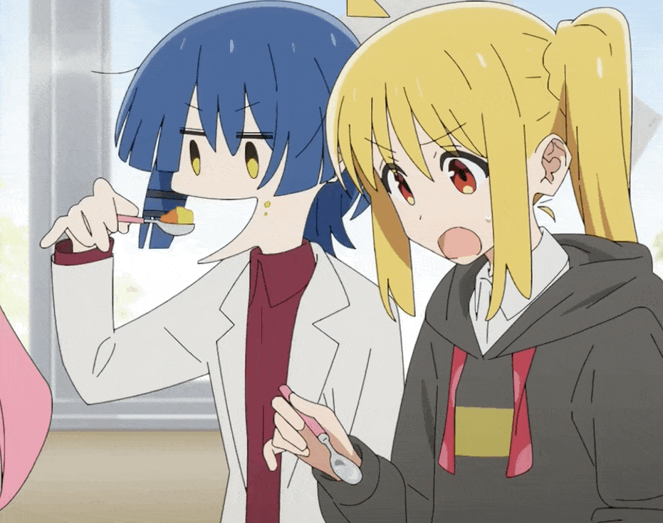 虹夏の食ってる時はスプーンドラえもん持ちなのに自分の食うときは小指立てて持つというw