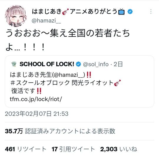 そういや未確認ライオットの元ネタ、閃光ライオットが復活するらしいね