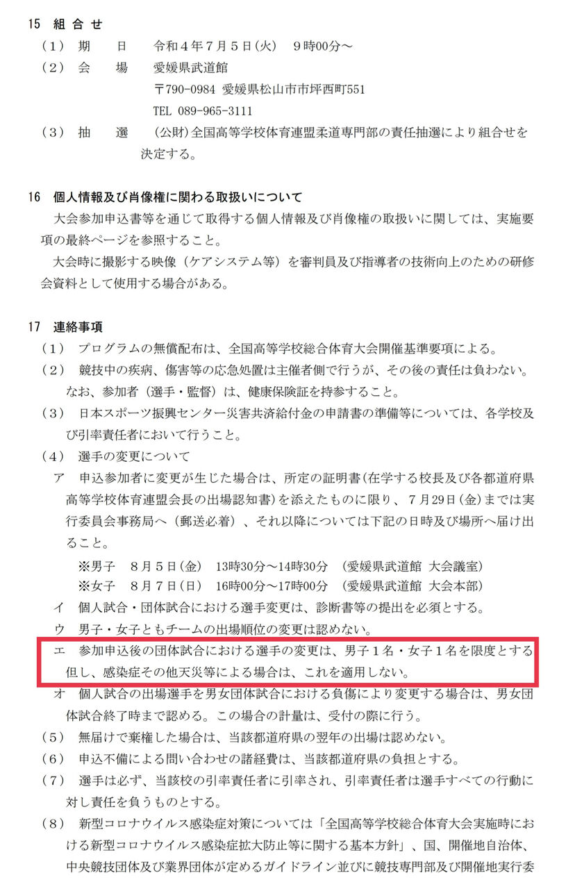 けど去年のインターハイの実施要領にはその記述が書かれてないのです。不思議