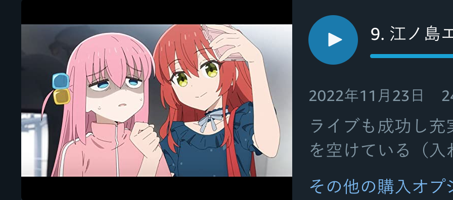 アマプラの9話のサムネの喜多ちゃんが右手でぼっちちゃんの胸ぐら掴んでるように見えた