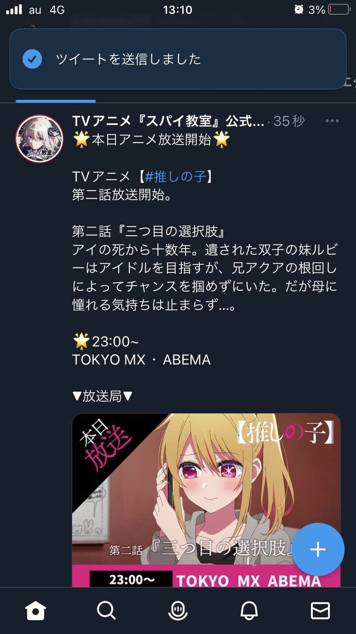【悲報】「スパイ教室」公式Twitter、間違えて『推しの子」のお知らせを流してしまうwwwwww