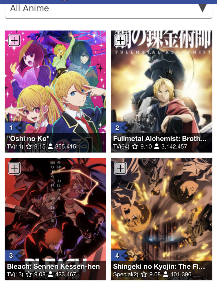 今2位のハガレンを一時的に越えてたこの前のブリーチ2期も進撃完結編もかぐや3期もみんな低評価爆撃にあってハガレンより下に落とされたからな…